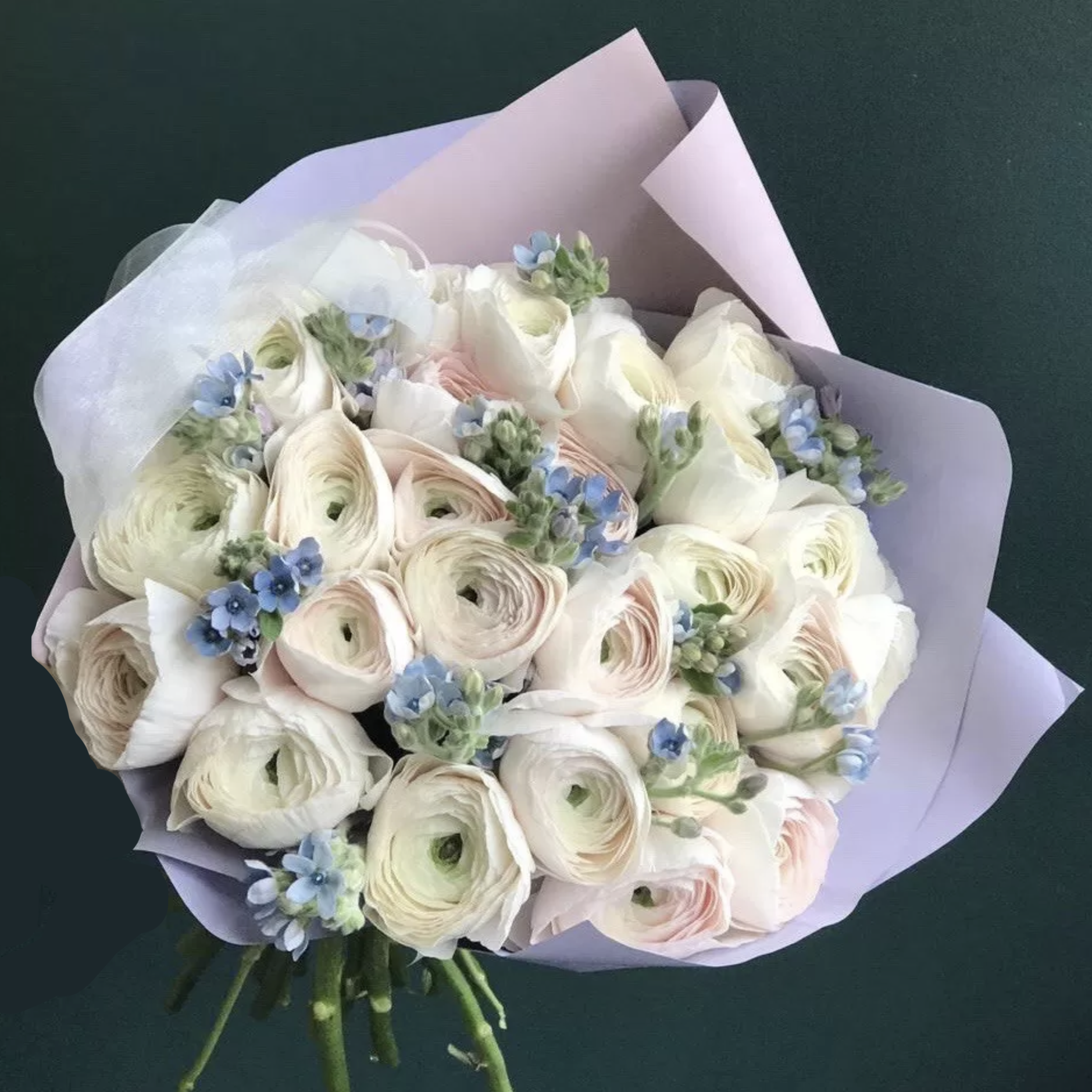 Ein exklusives Bouquet aus 29 edlen Ranunkeln und zartem blauem Oxypetalum, das die Schönheit des Himmels und die Eleganz der Natur einfängt. Die üppigen Blüten der Ranunkeln in harmonischer Kombination mit den filigranen blauen Akzenten des Oxypetalums schaffen ein einzigartiges, luftiges Arrangement. Dieses Bouquet ist perfekt, um besondere Momente zu feiern oder einem geliebten Menschen einen Hauch von Luxus und Zärtlichkeit zu schenken. Verpackt mit Stil und Liebe zum Detail – ein wahrer Genuss für die Sinne.